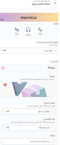 بعد اختيار العنصر يمكنك الان اضافة 3 مزايا في صف واحد وبشكل ملف ومميز (تستخدم مزايا المتجر لعرض نقاط قوتك والمزايا التي تقدمها لعملائك).